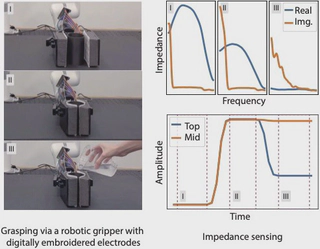 Despite recent exponential advancements in computer vision and reinforcement learning, it remains challenging for robots to interact with liquids. These challenges are particularly pronounced due to the limitations imposed by opaque containers, transparent liquids, fine-grained splashes, and visual obstructions arising from the robot’s own manipulation activities. In this work, we present a novel approach for liquid class identification and state estimation leveraging electrical impedance sensing. We design and mount a digitally embroidered electrode array to a commercial robot gripper. Coupled with a customized impedance sensing board, we collect data on liquid manipulation with a swept frequency sensing mode and a frequency-specific impedance measuring mode. Our developed learning-based model achieves an accuracy of 93.33% in classifying 9 different types of liquids (8 liquids + air), and 97.65% in estimating the liquid state. We investigate the effectiveness of our system with a series of ablation studies. These findings highlight our work as a promising solution for enhancing robotic manipulation in liquid-related tasks.